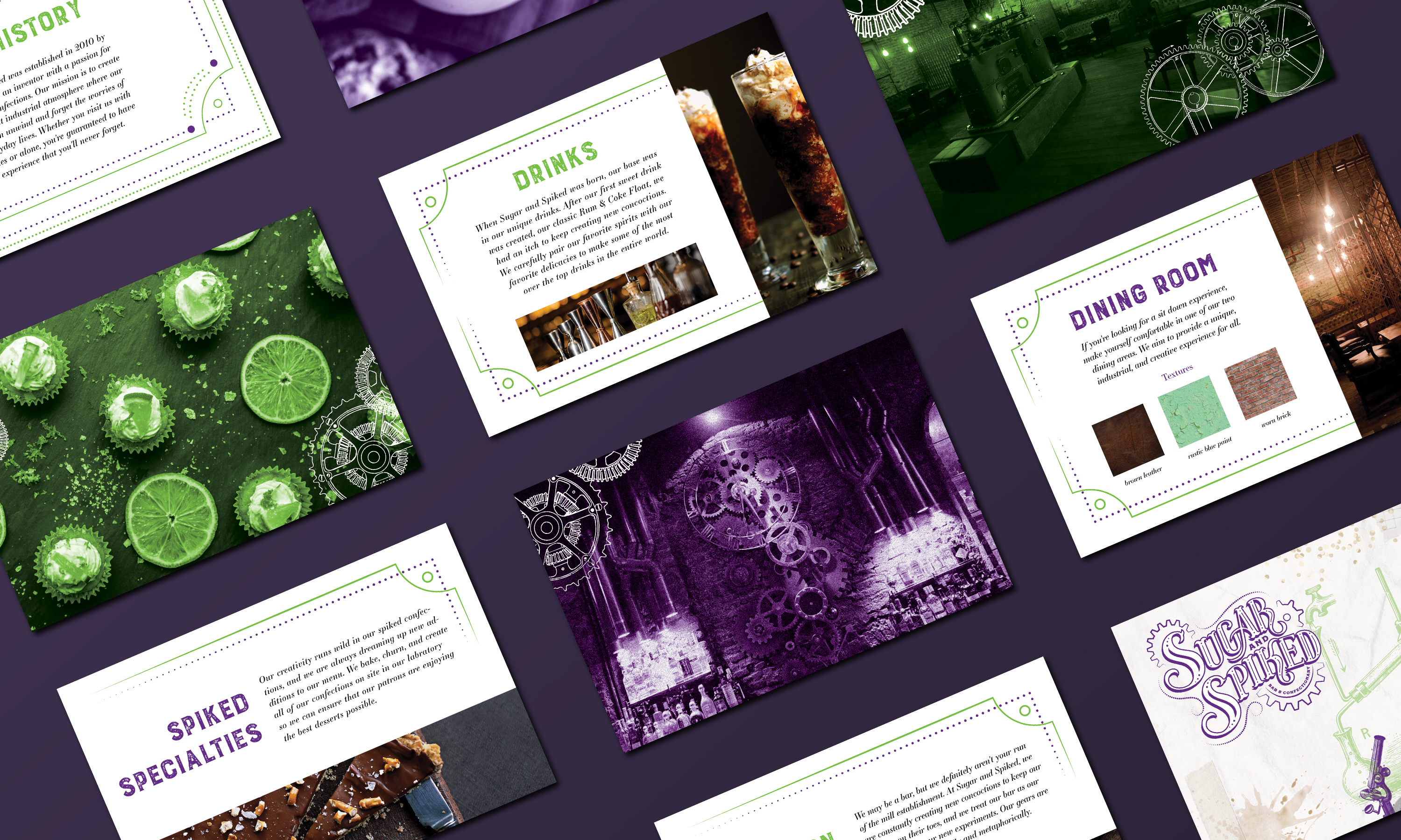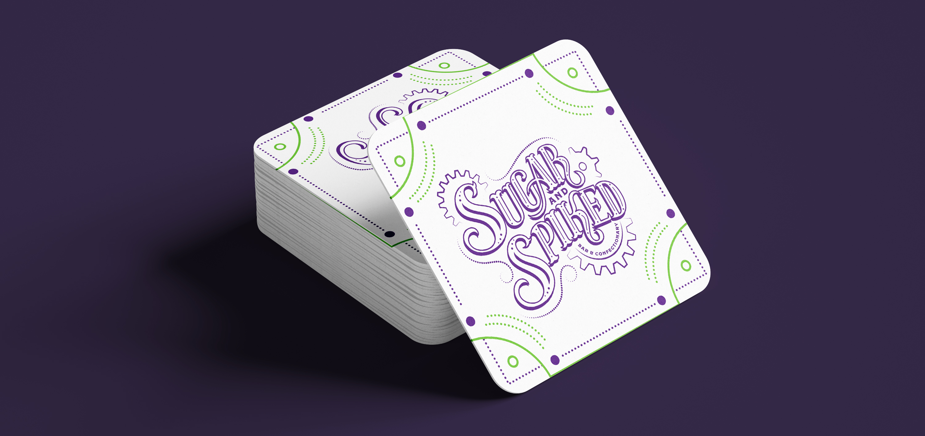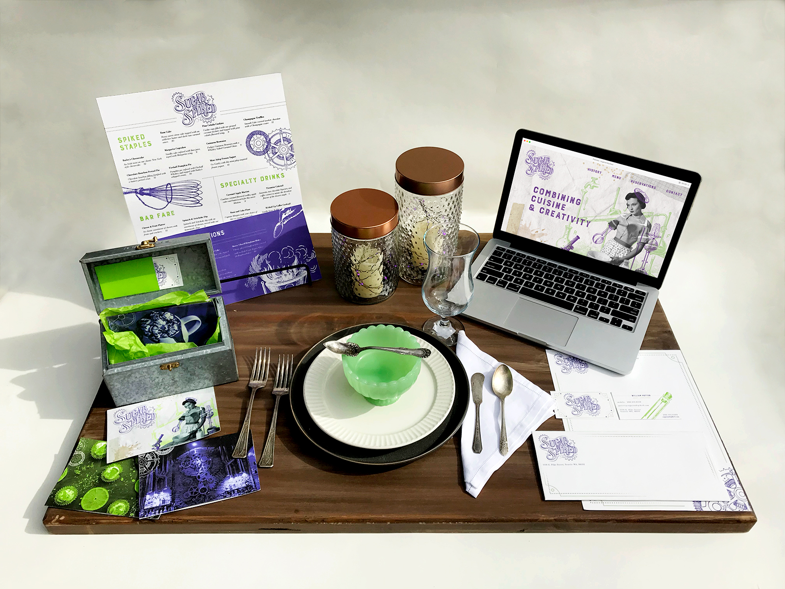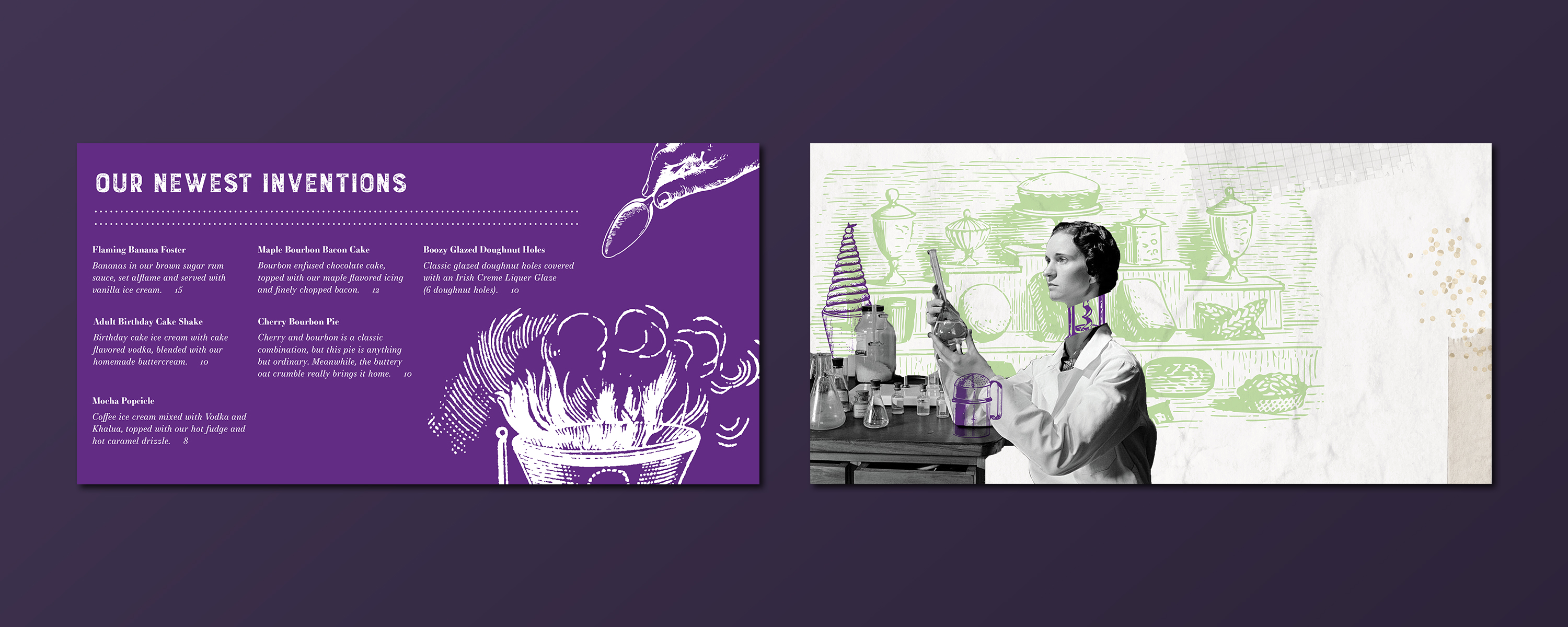 Specializing in unique and over the top alcoholic desserts is what Sugar and Spiked does best. This bar and confectionary opened their doors in 2010 and focuses on experimenting with new and unconventional pairings to create delectable combinations. The Sugar and Spiked logo was created with hand drawn typography and vector illustrations. All collages were created using vintage black and white images, scanned paper textures, and altered public domain etchings.